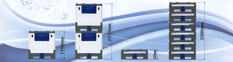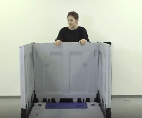 日本の物流規格に合ったプラスチック製の折りたたみコンテナ。