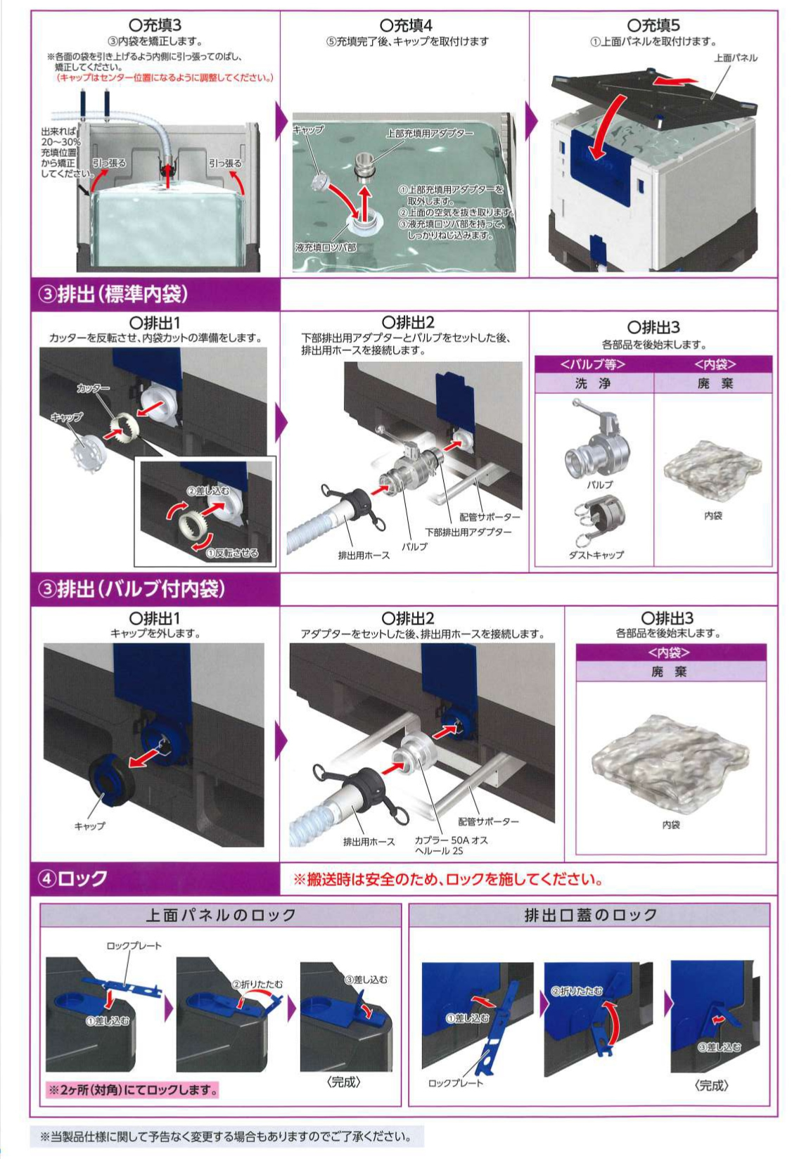 内袋式の液体用折りたたみコンテナーは食品、化学など多くの業界で活用頂いております。